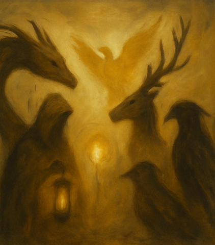 Veridon vs. Aurelith: Truth shattering hollow power (glass antlers reflecting emptiness)